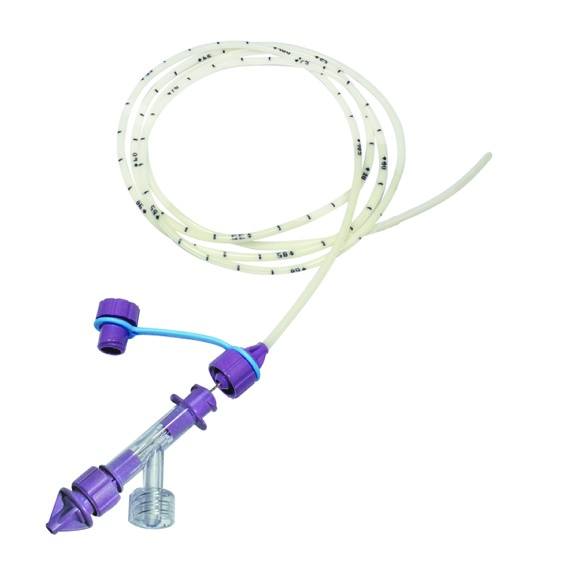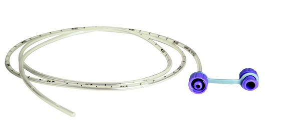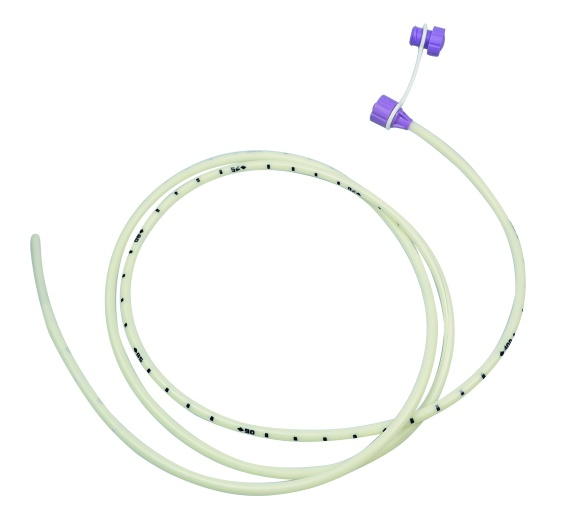 Enteral naso-duodenal sonde i polyuretan (PU) er gjennomsiktig med radioopake kant, centimetrisk markering og numerisk markering hver 5. cm (fra 20 til 100 cm), atraumatisk lukket distal spiss, 4 laterale distale åpninger, ENFit hannkobling med skrulokk og farget tether per French size. Med vekt og guide-wire.