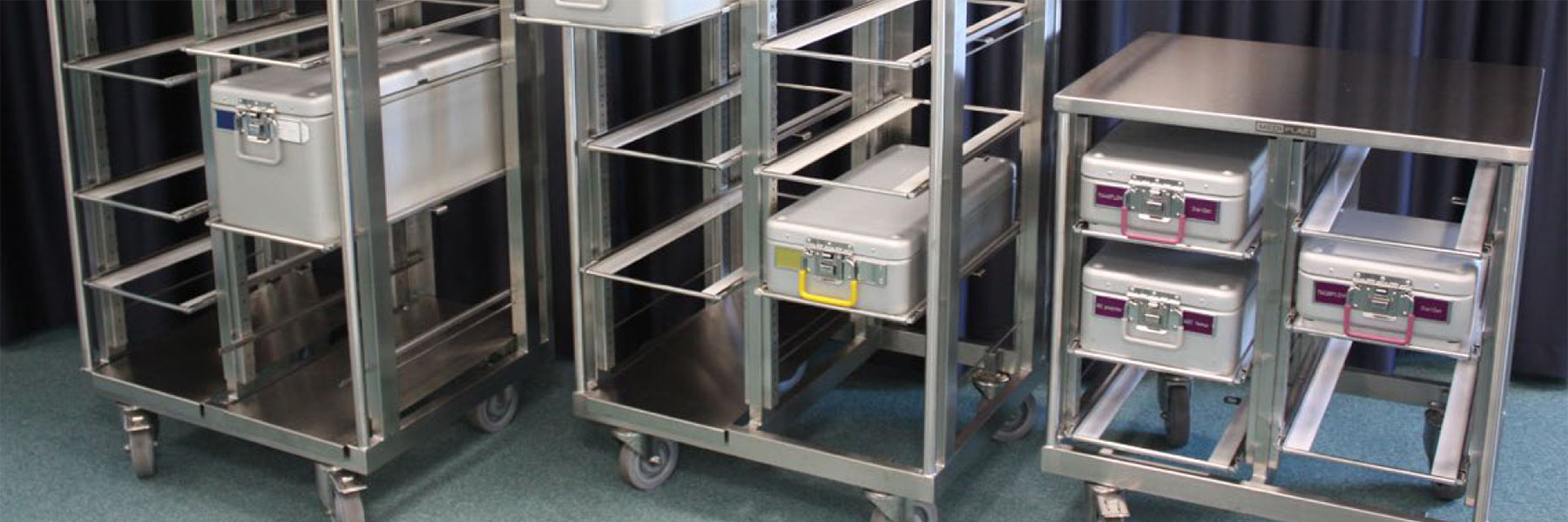 • Plassbesparende konstruksjon som muliggjør stabling av opptil tre beholdere i sterilisatoren.