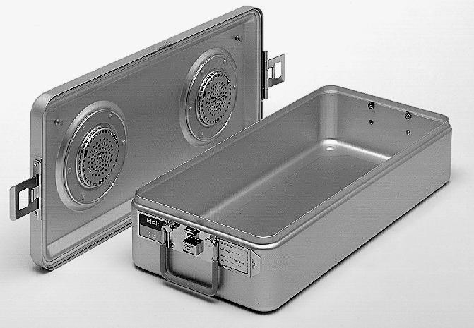 Beskyttet med dobbelt låg • Robust aluminiumsramme, der beskytter dyrebare instrumenter og den indvendige ventil. • Pladsbesparende konstruktion, der muliggør stabling af op til 3 beholdere i autoklaven. • Holder støv, fugt og andre forureninger ude for ekstra hygiejne. Ventil i rustfrit stål • Hjælper med til at sikre steriliteten og mindske spild. • Eliminerer behovet for engangsfilter af papir. • Trykaktiveret, åbner automatisk under steriliseringscyklussen med dampvakuum. • Ventilen holdes lukket efter sterilisering og udgør en uigennemtrængelig barriere, som holder indholdet sterilt. Manipuleringssikker • Det intelligente, varmeaktiverede låsesystem ThermoLoc, låser låget fast under steriliseringscyklussen. • Eliminerer behovet for engangslås af plast. • Giver en manipuleringssikker forsegling. • Sikrer at beholderen holdes lukket, til den åbnes på operationsstuen. • Alsidige, farvekodede håndtag og brikker forenkler håndteringen. Kondensdræn for store væskemængder • Perfekt til sæt, der vejer over 8 kg og til situationer, hvor der bruges damp. • Åbner, når autoklaven når 130 °C, så resterende kondens kan løbe ud af beholderen. • Når autoklavetemperaturen kommer under 110 °C, lukker udløbsporten, hvilket garanterer et tørt, fuldt instrumentsæt.